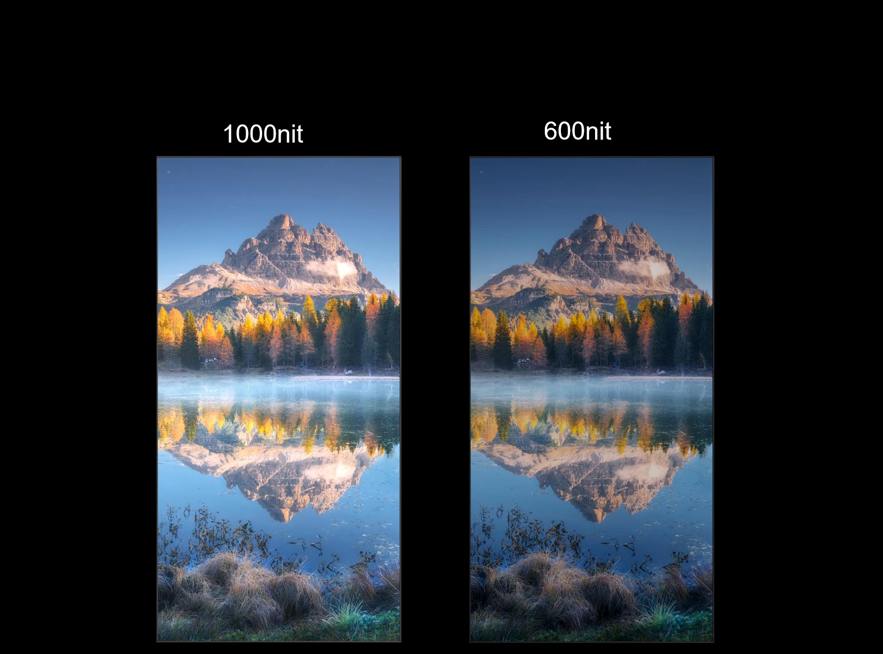 高亮度结合高对比度和色彩处理技术,使高 光部分更加清晰,暗部细节也更为细腻