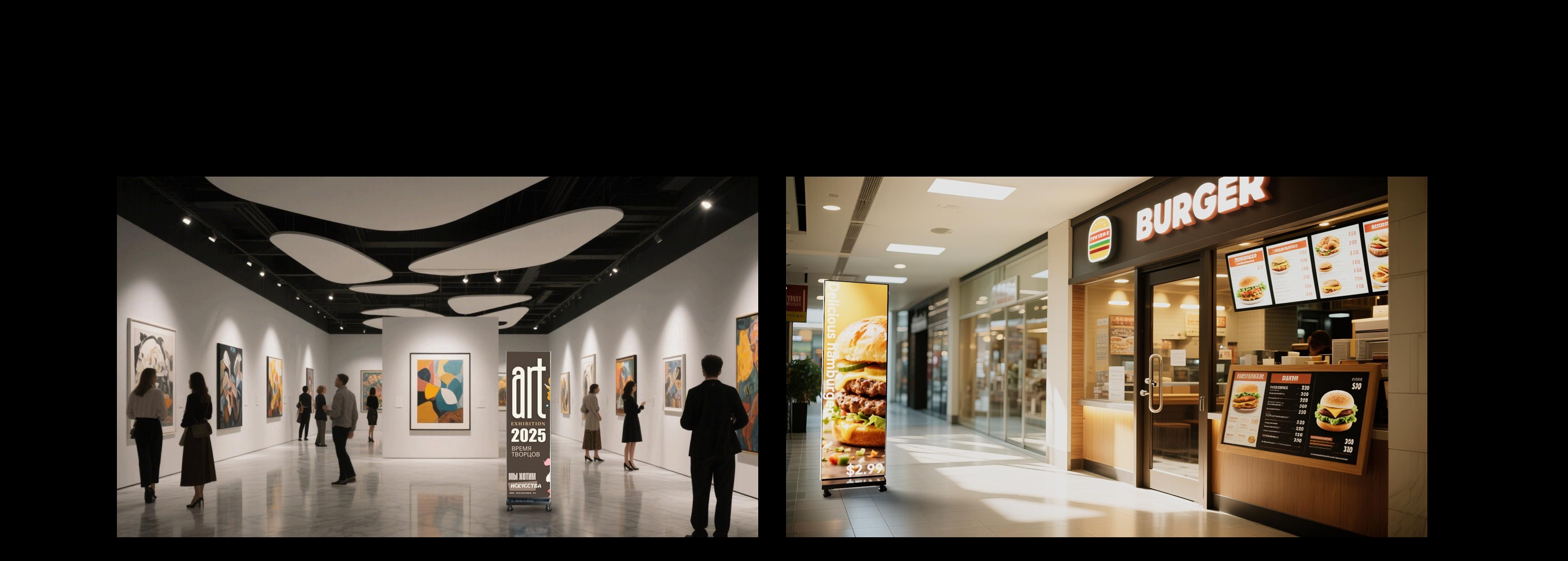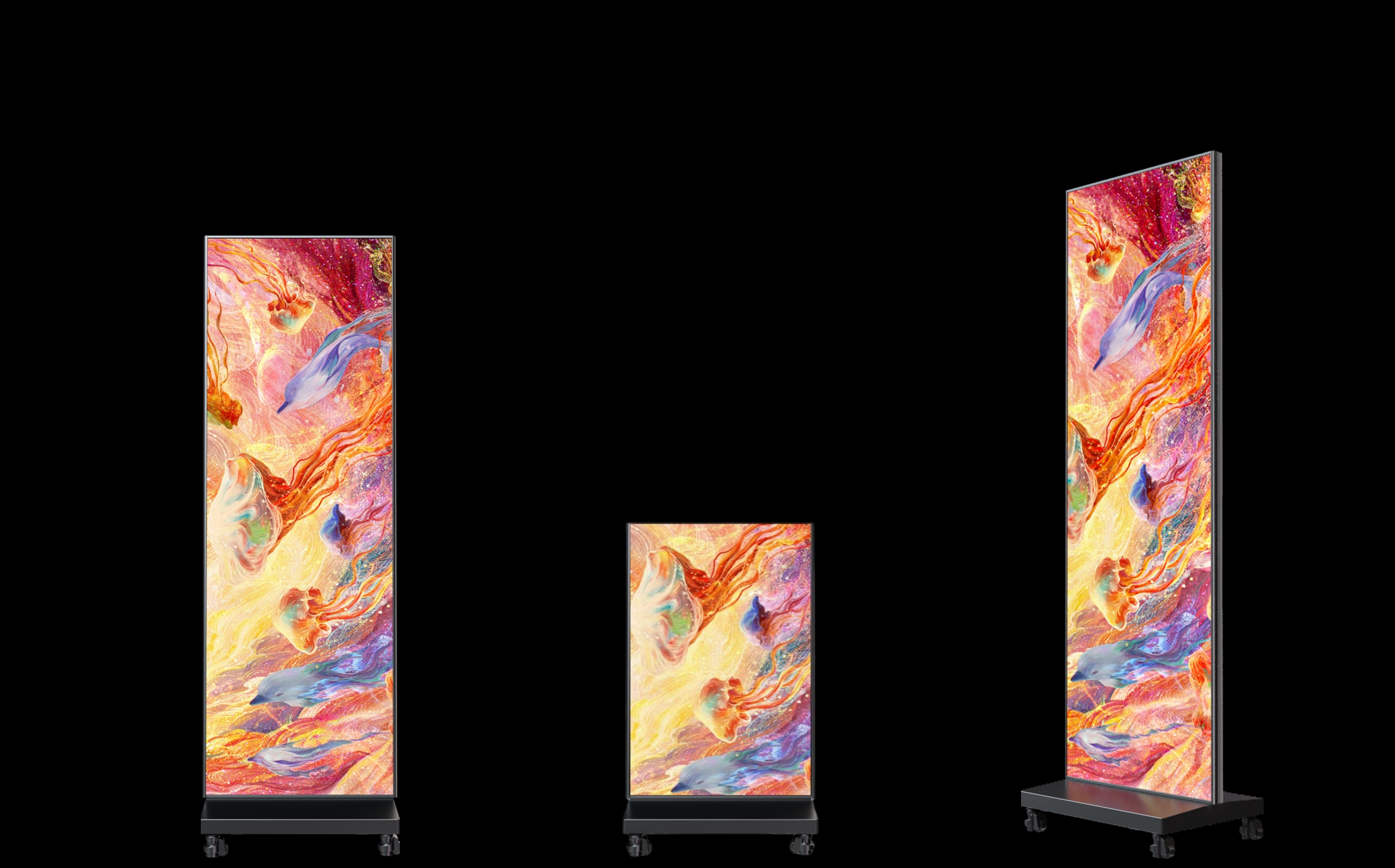 轻巧、可移动 LED海报屏,采用双面显示 设计,确保画面清晰可见。非常适合展览、 零售和办公场所使用。